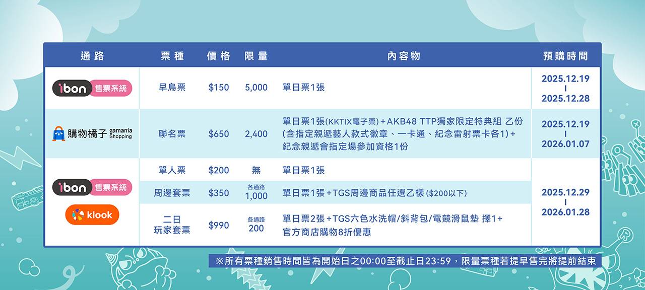 *2026台北國際電玩展早鳥票數量有限,若提早售完將提前結束。