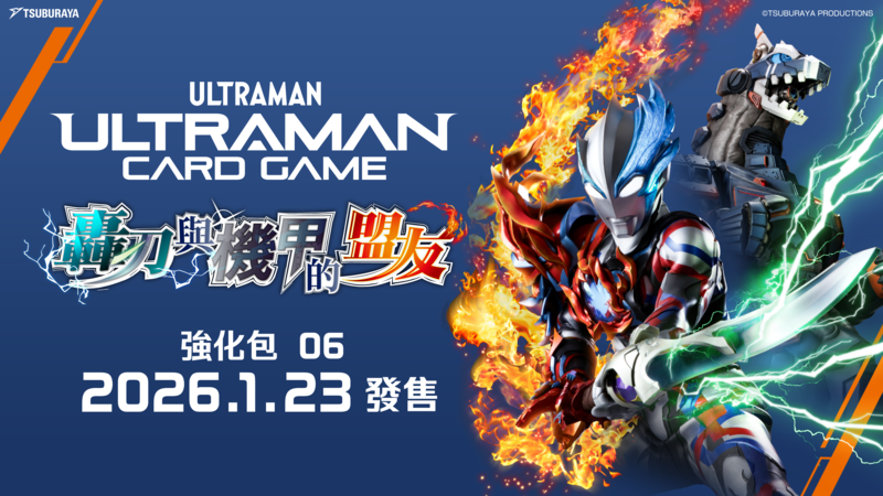《超人力霸王卡牌遊戲》第六彈新登場、正式宣布進軍2026台北國際電玩展! 圓谷製作宣布,《超人力霸王卡牌遊戲》將於 2026 年 1 月 23 日 推出全新強化包第 6 彈——《轟刃與機甲的盟友》(BP06)。 本系列不僅象徵遊戲邁入第