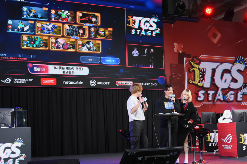 大會主舞台TGS STAGE首日活動同樣是人潮不斷、掌聲連連,中午由 ROG 名人組對抗賽《三角洲行動》揭開序幕,由知名實況主龜狗、妲妲等人分別擔任隊長,與現場玩家組隊激戰、體驗最新版本的遊戲魅力;接力登場的《SD 鋼彈 G 世代 永恆》特別舞台,不僅由國際版製作人四條僚一登台,親自公開最新遊戲情報,與玩家互動交流,現場VIP玩家還獲贈獨一無二的伴手禮,讓幸運兒直呼「超開心」。