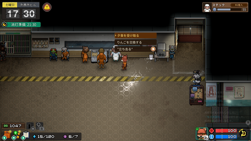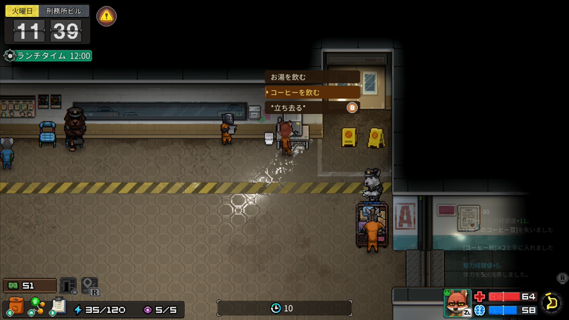 無論是工作或是健身、搜尋物品,獄中的大多數行動都需要消耗「精力」來進行。