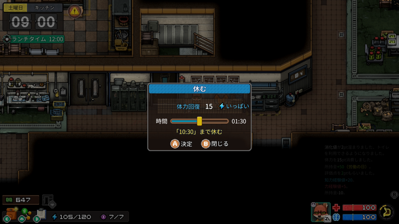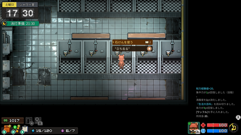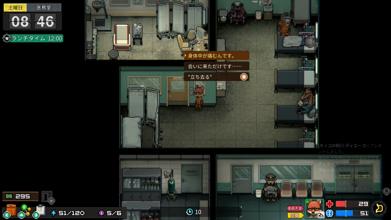 健康值可透過使用「蘋果」、「優格」、「止痛藥」等道具,或洗個熱水澡來恢復。
