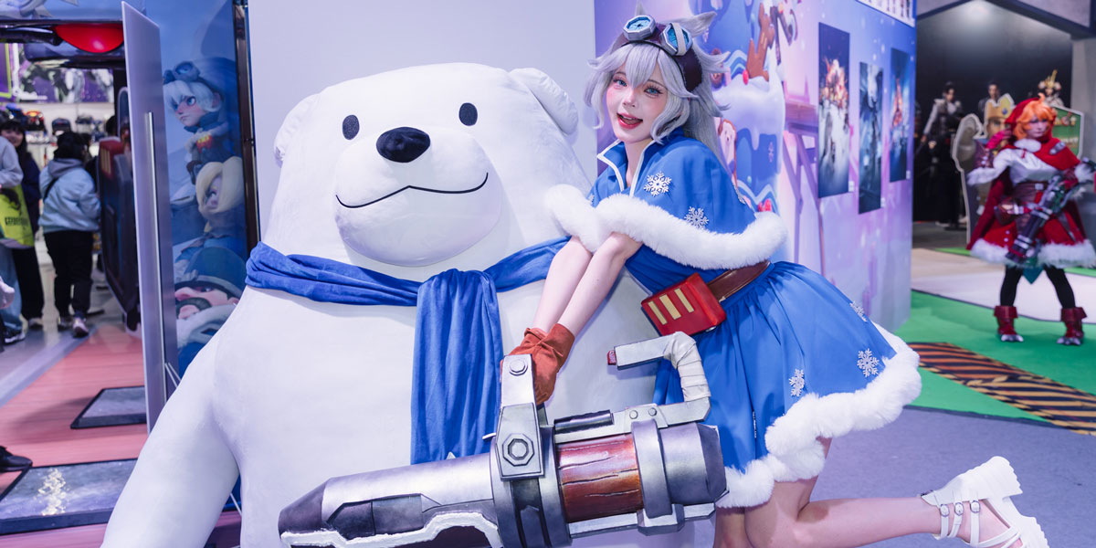 今年舞台兩側以四公尺高的《寒霜啟示錄》的大白熊與《Kingshot》的國王壓陣,熱邀六位韓籍啦啦隊表演、遊戲互動,更安排 Coser 表演與舞團熱舞,全天候與玩家熱情互動,空檔期間還設有AR互動裝置,讓每位經過的玩家都能與白熊、國王互射打雪仗,享受絕無冷場的歡樂時光!