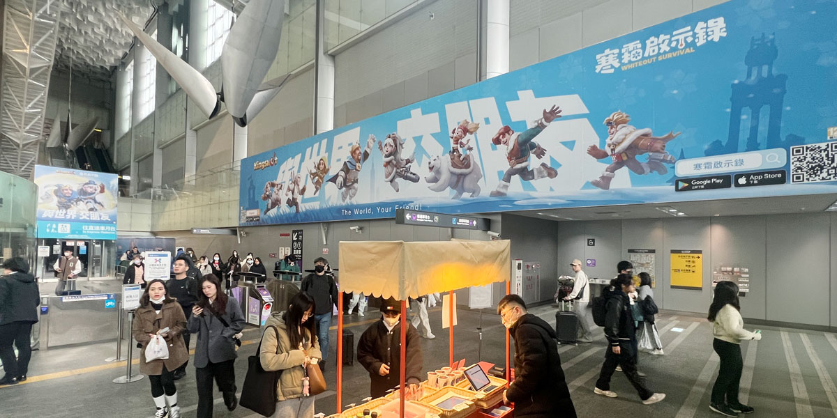 延續電玩展「與世界 交朋友」主題,《寒霜啟示錄》與《Kingshot》在桃園捷運A1台北車站與台北車站交接處,以「啟程旅行」為發想,設計雙品牌聯動海報,邀請領主與全球3億人一起玩、交朋友!即日起至 2 月 28 日,只要到該地點打卡並回覆在粉絲團活動貼文,即有機會獲得寒霜小白熊與Kingshot撲克牌。